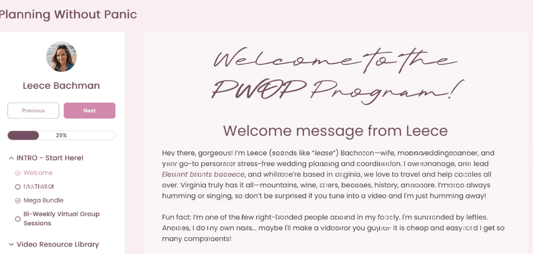 Most brides-to-be feel overwhelmed by where to even begin with wedding planning. This program makes it simple, giving you a clear roadmap, easy-to-use tools, and ongoing support - so you can move forward with confidence and actually enjoy the process.